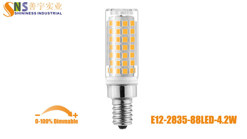 4.2W 450Lm Dimmable E12 LED light bulbs, Use good quality 88pcs 2835 LED, No flicker, Input AC110-130V.